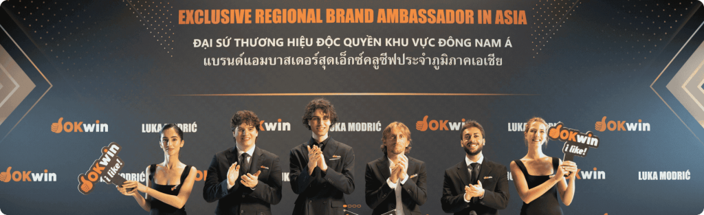 | Đại sứ thương hiệu | 🌍 Luka Modrić – Biểu tượng toàn cầu, linh hồn hàng tiền vệ Real Madrid, đại diện cho tinh thần chiến đấu, uy tín và đẳng cấp của OKWIN. “OKWIN không chỉ là nền tảng giải trí, mà còn là minh chứng cho sự chuyên nghiệp và tầm nhìn vượt trội.” |