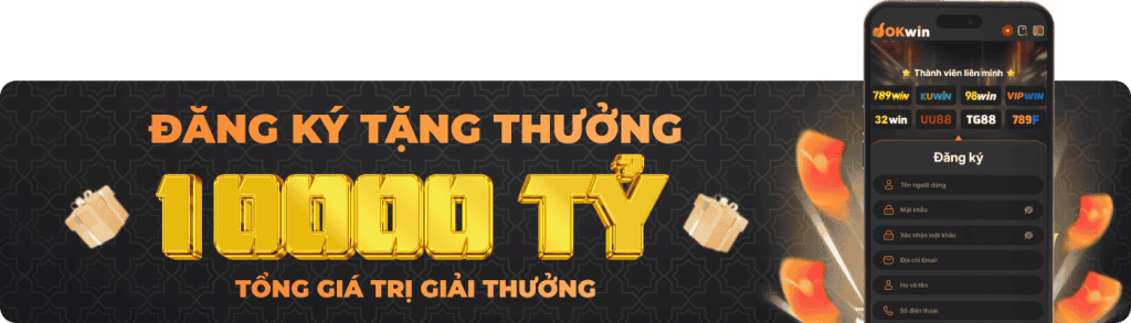 🎯 Hãy đăng ký ngay hôm nay để nhận thưởng độc quyền và cùng trải nghiệm thế giới giải trí toàn cầu OKWIN – nơi đam mê, may mắn và cơ hội hội tụ!